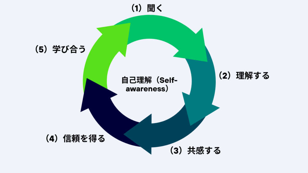 聞くとは、“判断を保留して相手の世界を理解する”行為です。これができると、リーダーと部下の間に信頼関係が生まれ、チームの心理的安全性(psychological safety)が高まります。